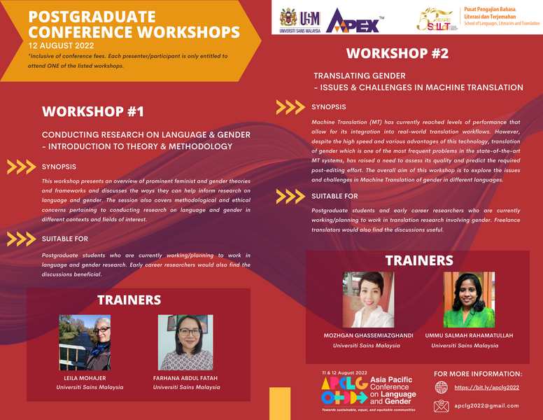 This 2-day virtual conference on language and gender brings together scholars and student-researchers from the Asia Pacific region and beyond to present new and emerging research on language and gender, with a specific focus on sustainability and equity. This conference highlights the important roles language play in not only shaping our understanding and construction of gender, but also in the multiple ways language and gender interlink to impact on the lived experiences of women, men, and children. With Universiti Sains Malaysia's (USM) sustainability agenda in mind, this conference targets the following SDG goals, by highlighting the role of language: